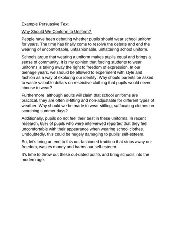 Read Online persuasive speeches for school uniforms examples Reader Google eBookstore